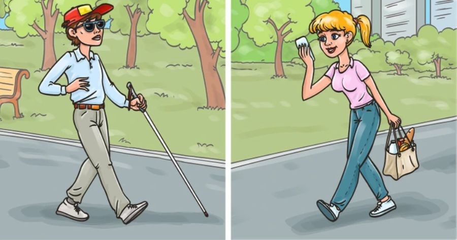 Who is more likely to trip on the road?