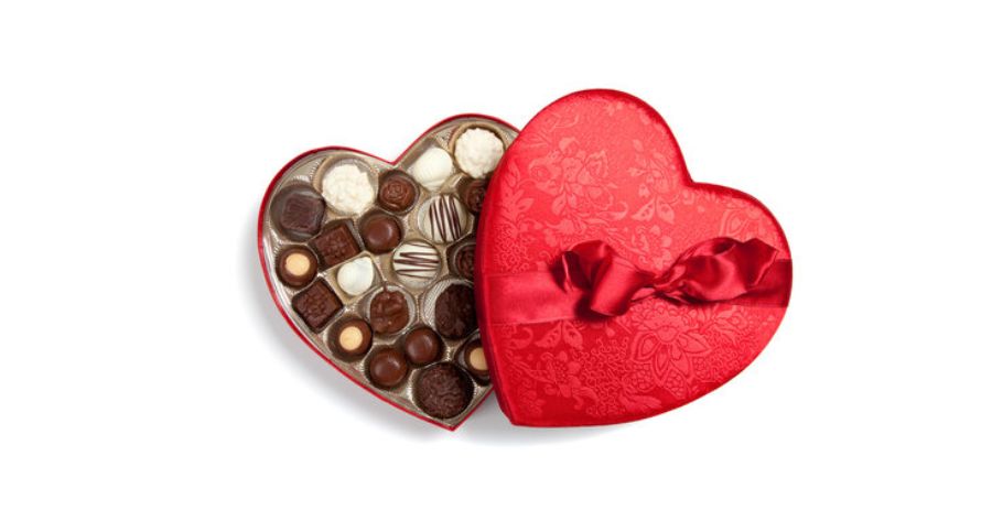 A heart-shaped chocolate box